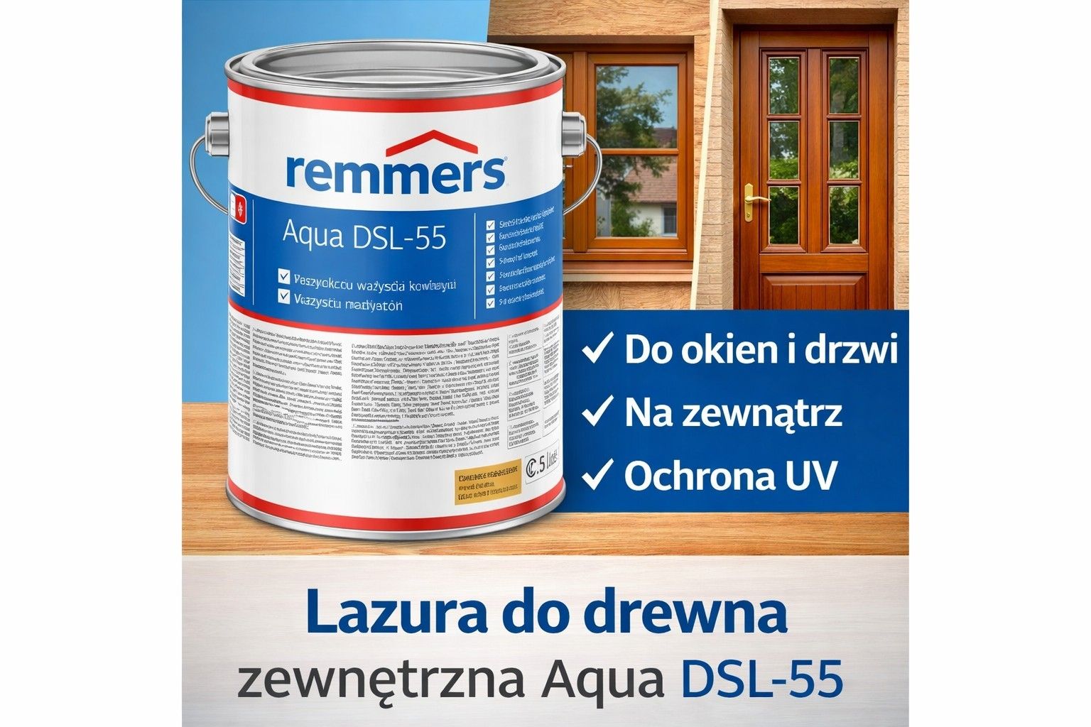 Lazura do drewna zewnętrzna Remmers Aqua DSL-55 2,5L – do okien i drzwi, połysk jedwabisty