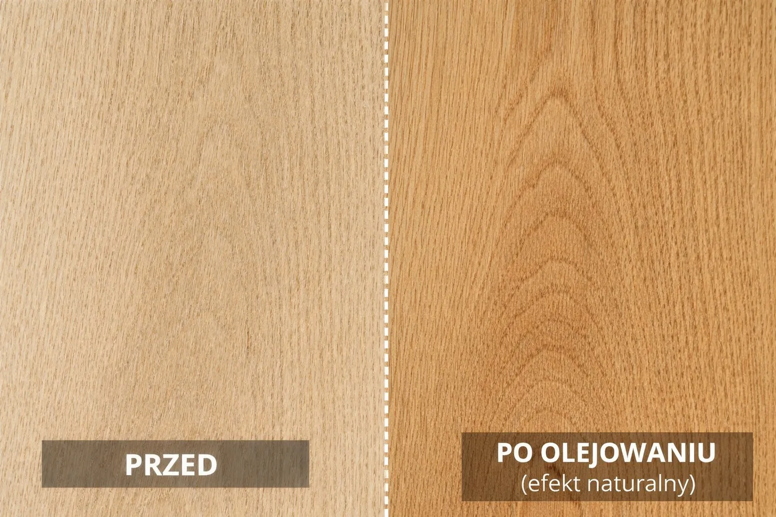Uwaga: olej nie tworzy pełnej bariery jak lakier – przy długotrwałym kontakcie z wodą mogą pojawić się ślady. Jest to naturalna cecha olejowanych powierzchni.