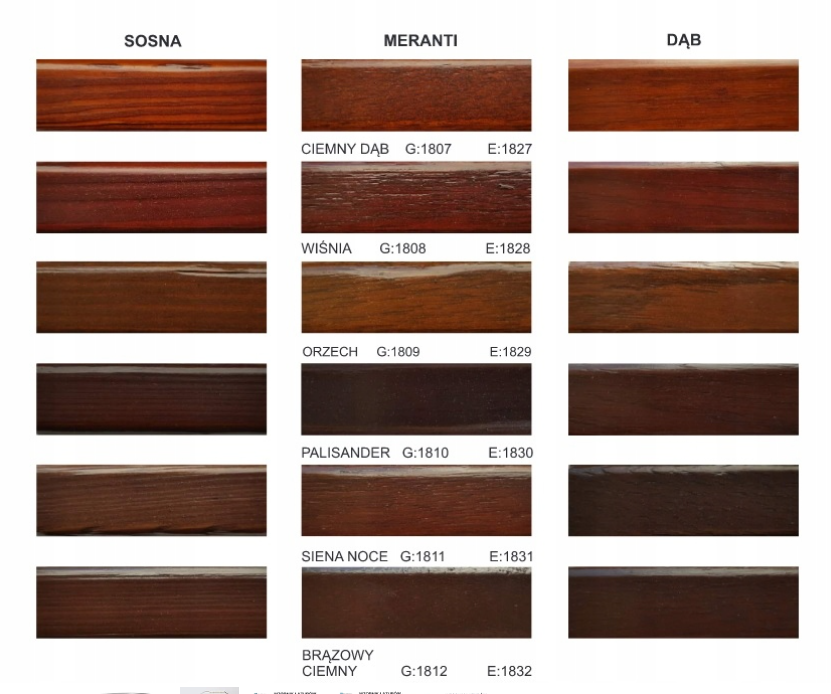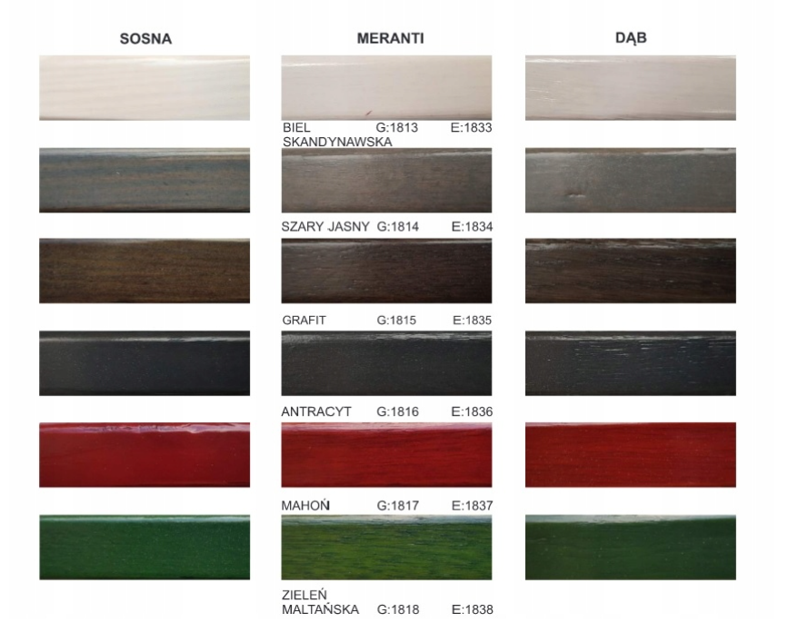 SOSNA E:1821 CYPRYS E:1822 STARA SOSNA E:1823 DĄB E:1824 TEAK E:1825 KASZTAN E:1826 CIEMNY DĄB E:1827 WIŚNIA E:1828 ORZECH E:1829 PALISANDER E:1830 SIENA NOCE E:1831 BRAZOWY CIEMNY E:1832 BIEL SKANDYNAWSKA E:1833 SZARY JASNY E:1834 GRAFIT E:1835 ANTRACYT E:1836 MAHOŃ E:1837 ZIELEŃ MALTAŃSKA E:1838 Pokaż wszystkie kolory