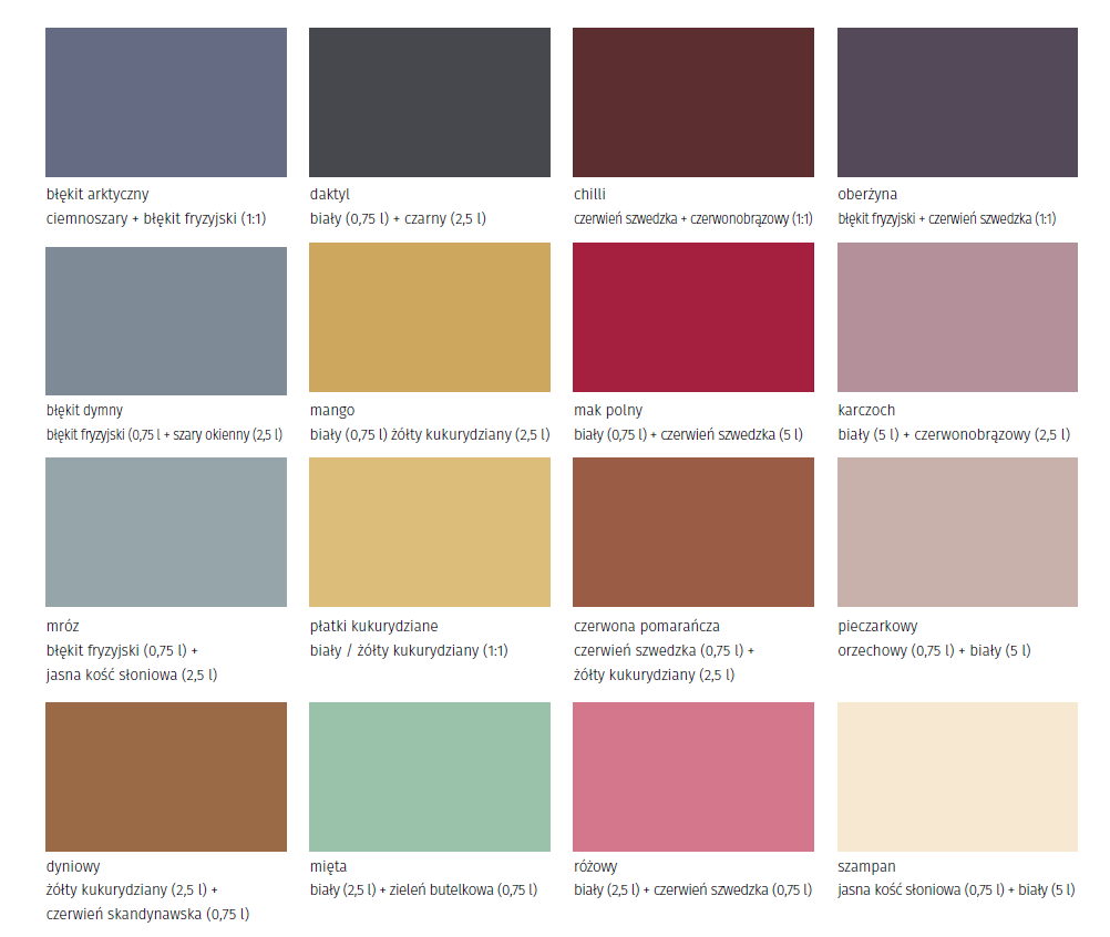 KOLORY DO WYBORU - WEDŁUG WZORNIKA